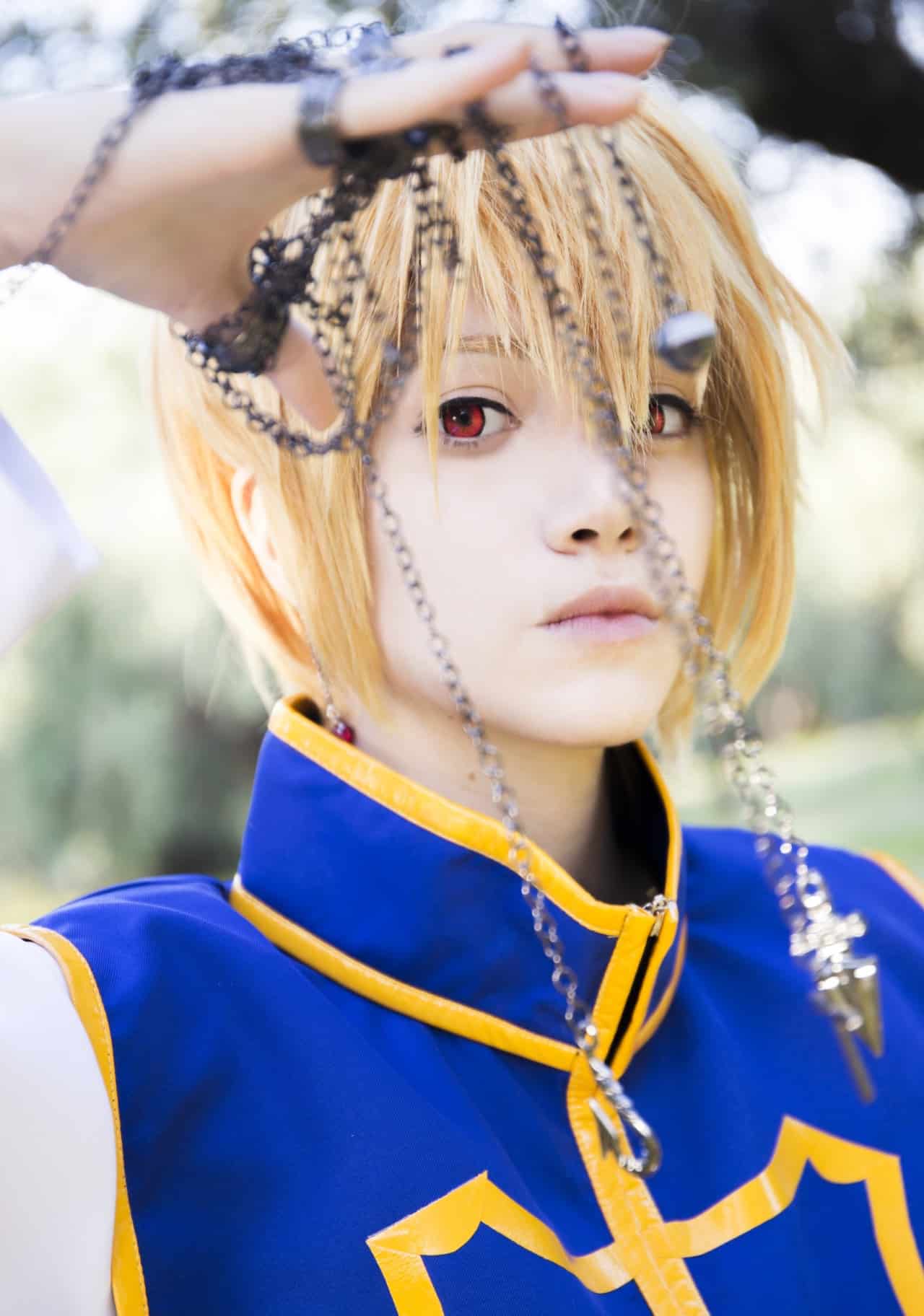 While the hairstyle is iconic, don’t overlook Kurapika’s outfit. His costume, including the blue sleeveless coat decorated with an orange or red-colored hem and a white training suit underneath is crucial for an authentic portrayal.