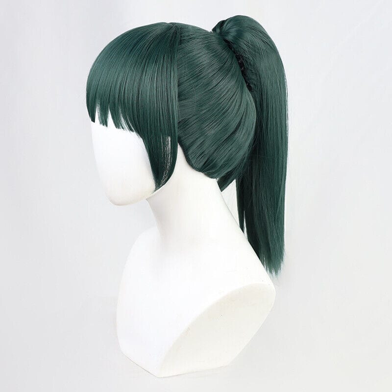 Maki Zenin is known for her striking appearance, characterized by her vibrant green hair and sleek, straight ponytail with bangs. With our meticulously crafted Maki Zenin Wig, you can effortlessly capture every detail of her hairstyle and immerse yourself in the world of “Jujutsu Kaisen.”