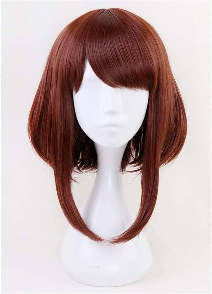Our Ochaco Uraraka wig is designed with precision to closely mirror Uravity’s iconic hairstyle from the anime. It features the same rich brown hue, bob cut, and playful bangs, ensuring an authentic and recognizable look for cosplayers.